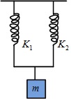 Soal ini adalah soal gabungan rangkaian pegas seri dan paralel. Pegas satu dan dua adalah susunan pegas paralel sehingga langkah pertama kita harus menggabungkan terlebih dahulu pegas pertama dan pegas yang kedua